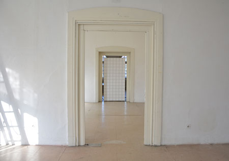 Der vorgefundenen Architektur eines Schlafsaales der ehemaligen Psychiatrie durch diverse Setzungen Motive des menschlichen