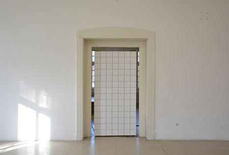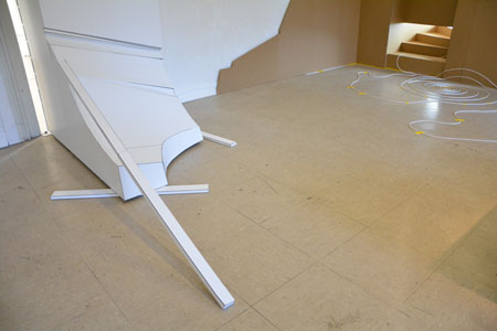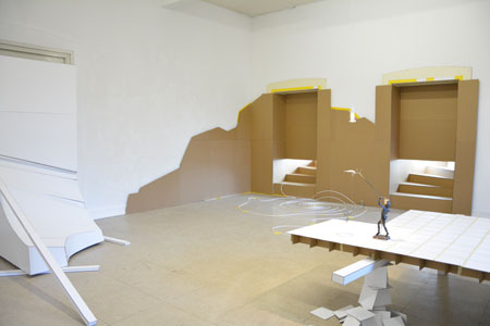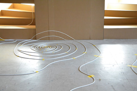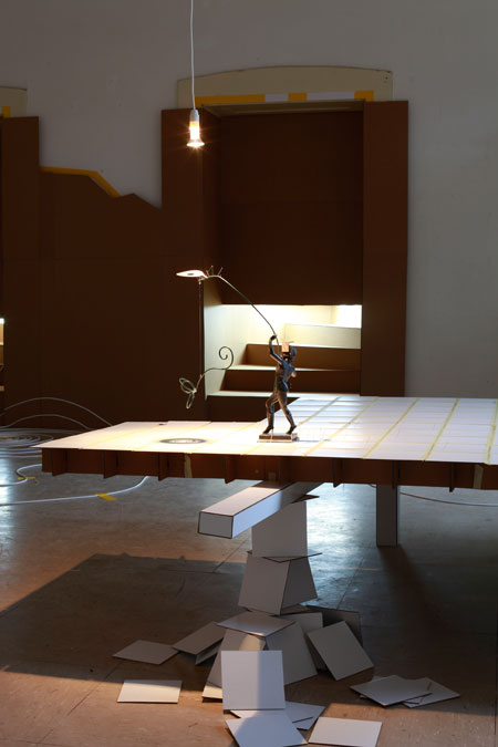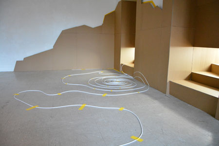 Installation im Rahmen des Symposiums "Chorprobe" in der Kunststation "Artoll", Bedburg Hau, 2014 Pappe, Neonröhren, Skulptur