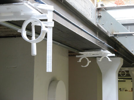 Im Kellergeschoss des alten E-Werkes Freiburg den zahllosen Spuren ehemaliger technischer Funktionssysteme künstliche Fragmente eines weiteren - fiktiven - Leitungssystems hinzugefügt. Vorgefundene Strukturen des Raumes und der aktuellen