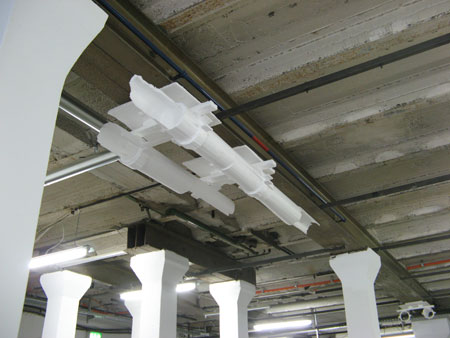 Installation im Rahmen der Ausstellung "Multistabile Wahrnehmung" (mit Jens Reichert, Hartmut Block, Nora Mertes, Mareike Drobny, Johanna Kintner, Ramon Muggli), Material: Styropor, EWerk Freiburg, 2011
