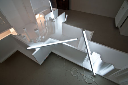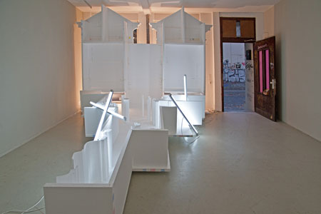 Installation, S.Y.L.A.ntenheim, BONN, 2013 Styropor, Neonröhren, diverse Materialien