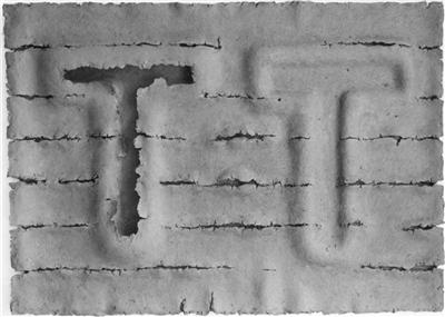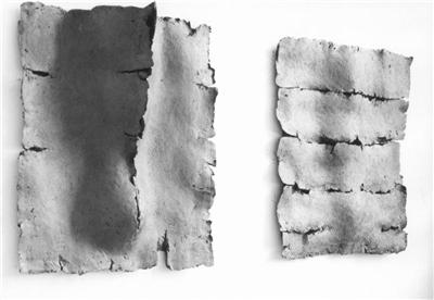 Temporäre Reliefs aus frischem Ton, unmittelbar auf die Wand aufgetragen Im Laufe des Trocknungsprozesses fielen die Flächen von den Wänden wie Schorf von heilenden Wunden.
